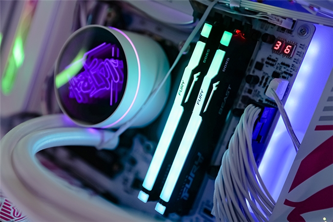 此外,现场的这台主机中还使用了Kingston FURY超级野兽系列的DDR5 RGB高频内存,规格为32GB×2条,共64GB。这款内存条可以轻松超频至6400MT/s,让你享受到极致的性能体验,到场的观众可以亲自上手感受一下它们的实力。