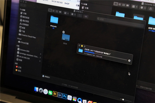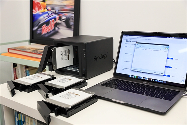 陈迪用的这套NAS存储方案,是采用一套由4个20TB的东芝N300 NAS硬盘和4盘位群晖DS923+搭建的NAS系统,并在这套NAS系统上组建了Raid 5磁盘阵列,理论上拥有接近60TB的存储容量,充分满足陈迪高速连拍的照片存储需求,除了硬盘的读写速度快,甚至还能随时随地将拍好的素材通过手机上传到NAS中,快速完成备份和文件归档,不仅能给存储卡留出一定空间准备下一次的拍摄,筛选查找作品也方便快捷多了。可以说在性能,大容量以及安全存储方面做到了三者兼顾。