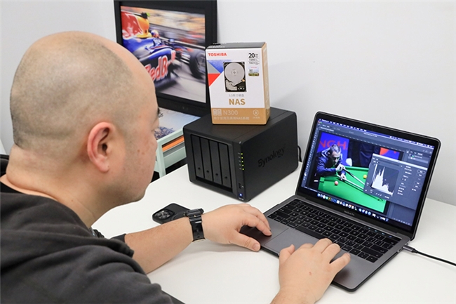 此外,陈迪对于东芝N300 NAS机械硬盘的低噪音表现留下了深刻印象。这款硬盘在工作时不会出现明显的噪音和震动,这也让他在选图修图的过程中可以保持专注力。即使上传和下载照片素材同时进行,东芝N300硬盘的读写性能表现依然优秀。这得益于其内置的旋转振动传感器,它能自动检测和补偿硬盘的瞬态振动,从而在多盘位NAS系统中提供一致的性能。